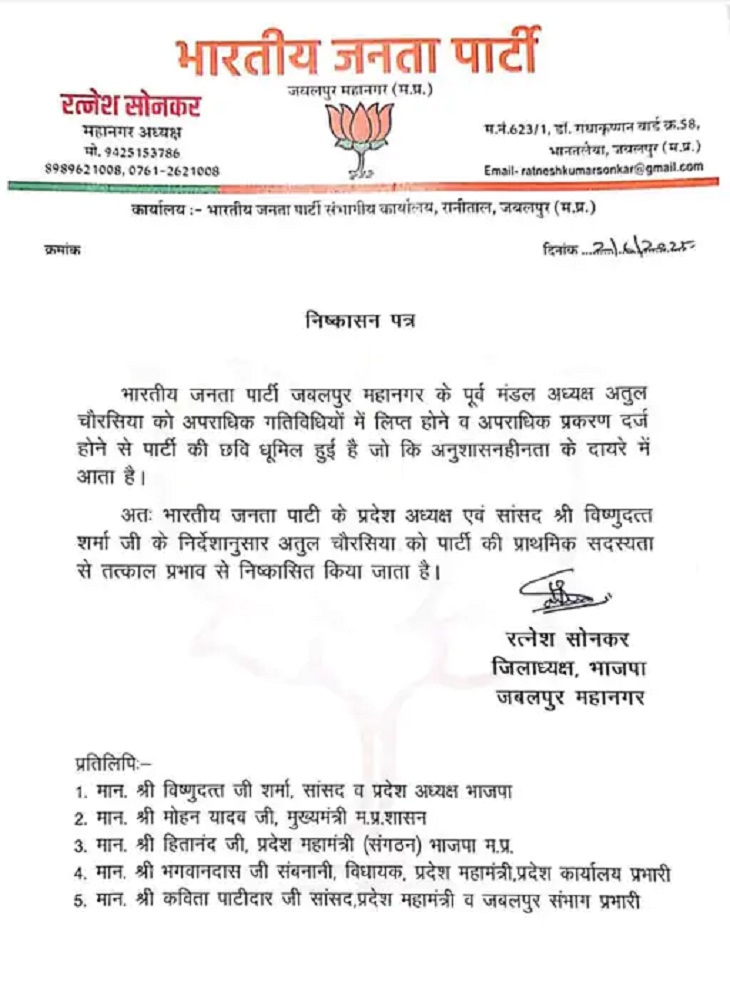 बीजेपी ने अतुल चौरसिया को किया निष्कासित