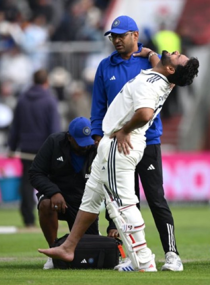 मैच के पहले दिन इंग्लैंड के गेंदबाज क्रिस वोक्स की एक धीमी यॉर्कर गेंद को रिवर्स स्वीप खेलते समय पंत चोटिल हो गए। गेंद उनके बैट से लगकर सीधे जूते से टकराई और उसके बाद वह दर्द से कराहते नजर आए। जूता खोलने पर सूजन साफ दिखी। फिजियो टीम की जांच के बाद उन्हें स्टेचर वैन के जरिए मैदान से बाहर ले जाया गया।