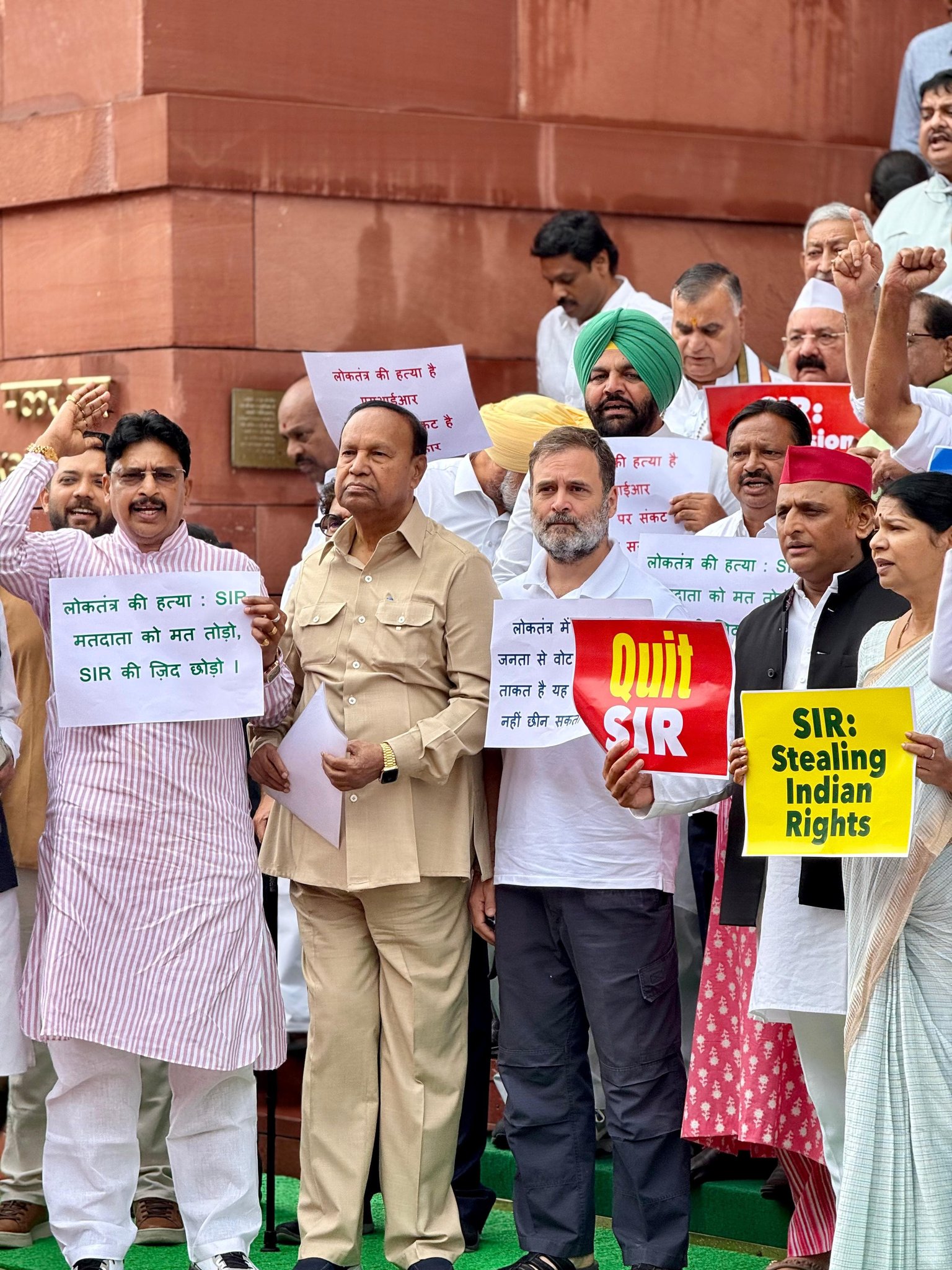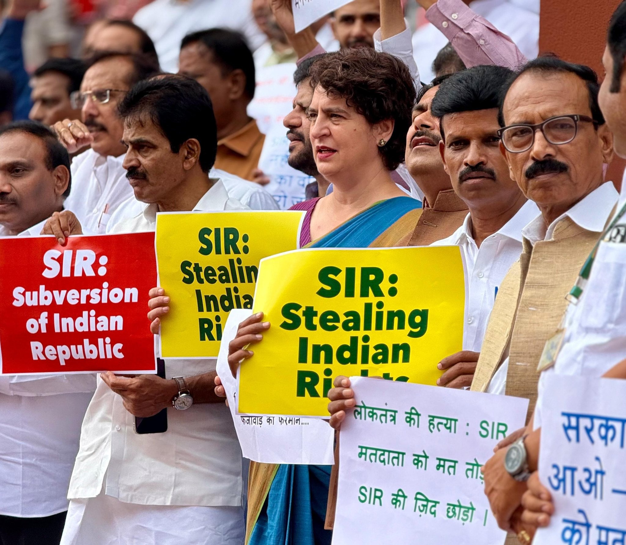 मार्च के अंत में विपक्षी सांसदों ने SIR लिखे पोस्टर फाड़े और उन्हें प्रतीकात्मक डस्टबिन में डालते हुए "मोदी सरकार हाय-हाय" के नारे लगाए। कांग्रेस ने इसे संविधान और लोकतंत्र पर हमला करार दिया।