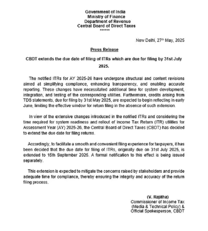 अब 15 सितंबर 2025 तक फाइल कर सकते हैं रिटर्न