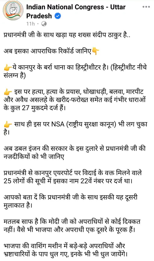 दरअसल, भाजपा नेता संदीप ठाकुर, अरविंद राज त्रिपाठी उर्फ छोटू और वीरेंद्र दुबे ने चकेरी एयरफोर्स स्टेशन पर पीएम से मुलाकात की थी। अब खुलासा हुआ है कि इन तीनों पर गंभीर आपराधिक मामले दर्ज हैं, जिसके बाद विपक्षी दल सपा और कांग्रेस ने भाजपा को घेरना शुरू कर दिया है।