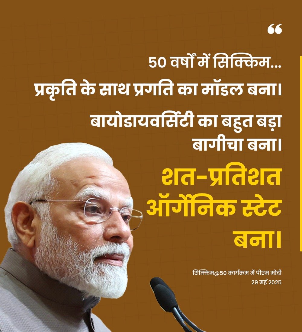 सिक्किम@50 : PM मोदी बोले- लोकतांत्रिक भविष्य की ओर बढ़ा सिक्किम ; 50 सालों में प्रगति और प्रकृति का अनूठा संगम बना राज्य