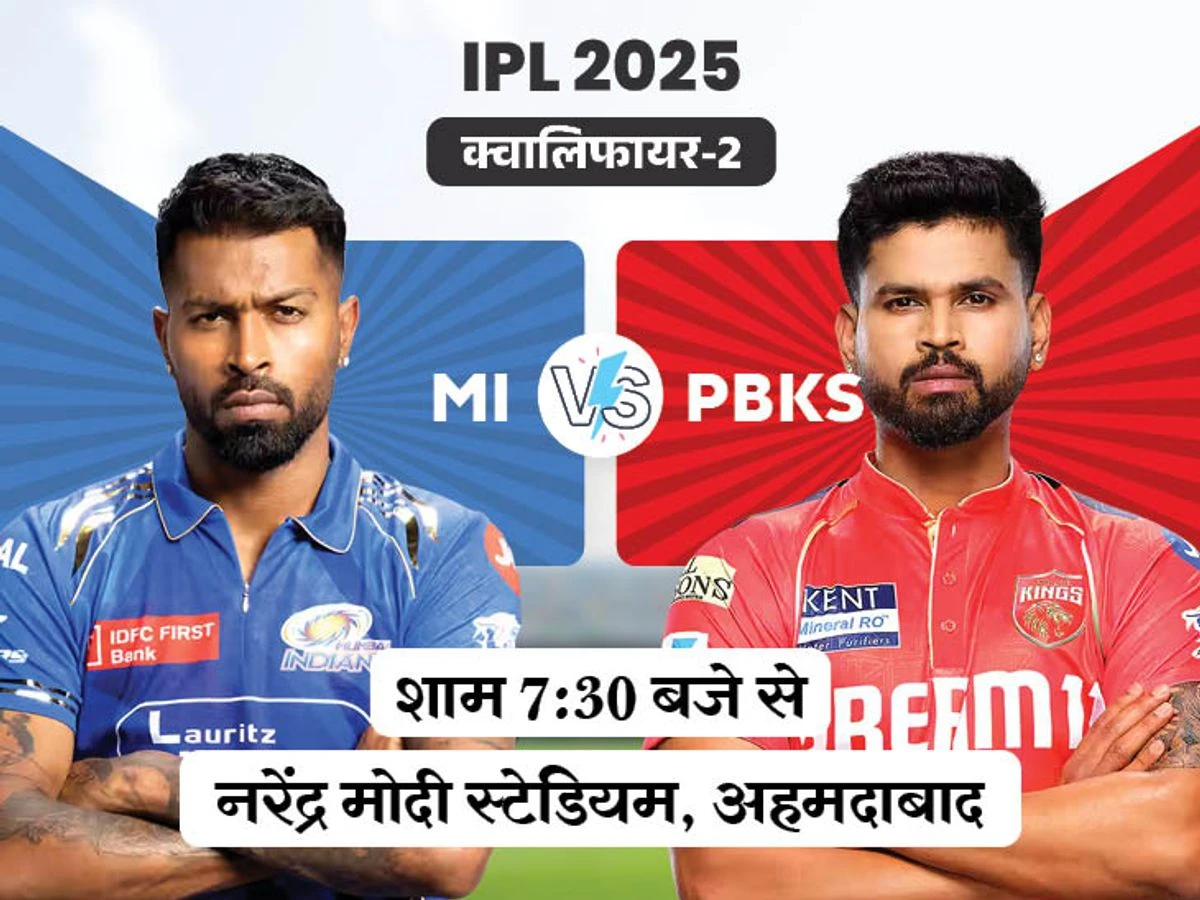 IPL 2025 में फाइनल के लिए टक्कर : अहमदाबाद में भिड़ेंगी मुंबई इंडियंस और पंजाब किंग्स; विजेता टीम का RCB से फाइनल में मुकाबला