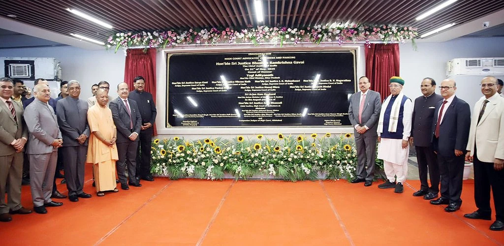 CJI बोले- इलाहाबाद की भूमि पावरफुल लोगों की : हाईकोर्ट परिसर में मल्टीलेवल पार्किंग और वकील चेंबर्स का उद्घाटन; कहा- यह इमारत दुनिया में वकीलों के लिए सबसे बड़ी